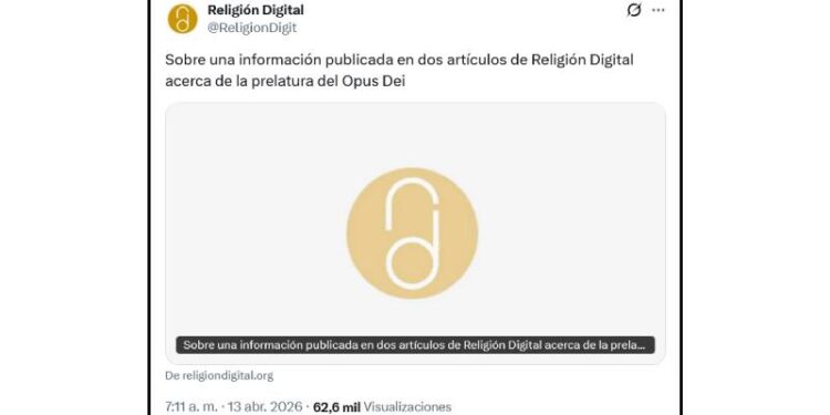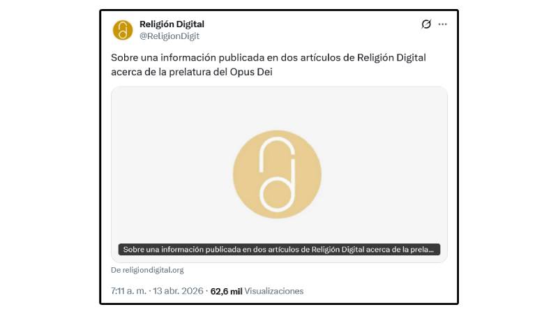 En la cuenta de Religión Digital, de la red social X aparecía un anodino tuit, con un críptico titular que remitía a un breve artículo de la página web: «Sobre una información publicada en dos artículos de Religión Digital acerca de la prelatura del Opus Dei»