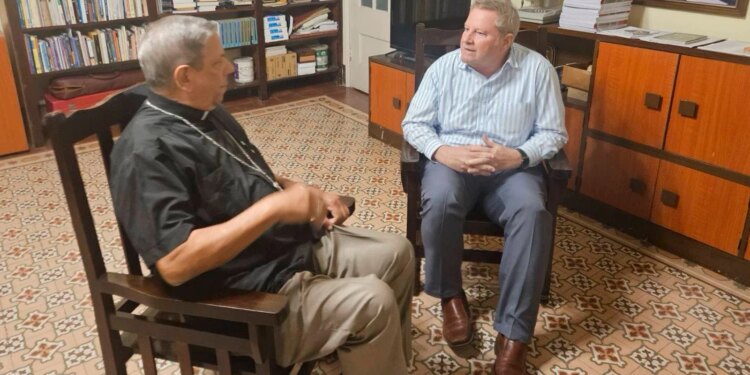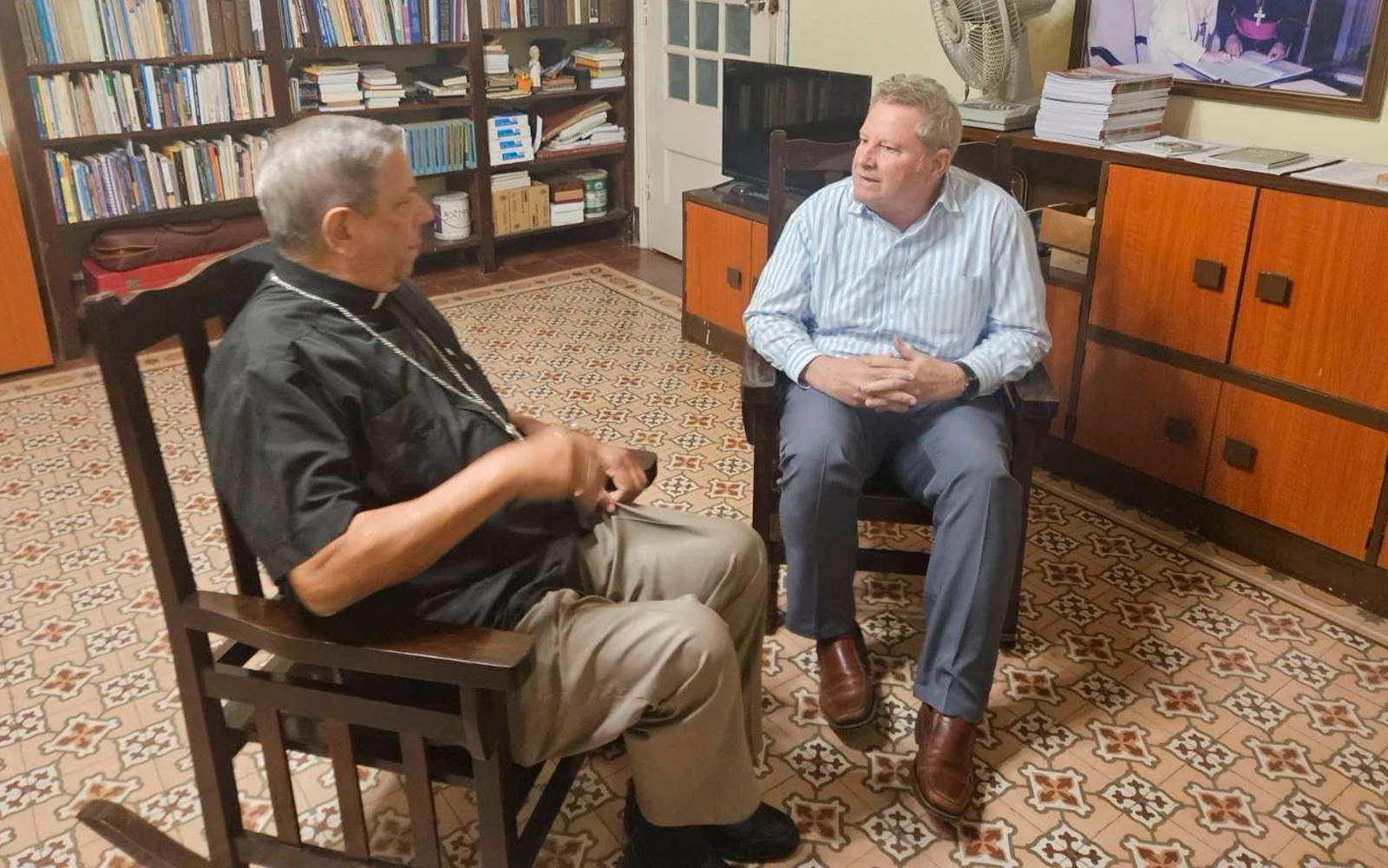 El Arzobispo de Camagüey, Mons. Wilfredo Pino, con Mike Hammer, encargado de negocios de la Embajada de Estados Unidos en Cuba. / Crédito: Embajada de los Estados Unidos en Cuba.