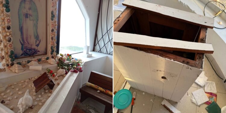 La Capilla de Guadalupe en Isla Mujeres sufrió un robo y vandalismo durante la noche del 1 de noviembre. Dos implicados en el robo han sido detenidos. / Crédito: Cortesía Parroquia Inmaculada Concepción Isla Mujeres.