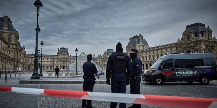 Agentes de la Policía francesa acordonan la entrada del Museo del Louvre tras un robo de joyas el 19 de octubre de 2025, en París. / Crédito: Kiran Ridley/Getty Images.