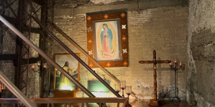 Rastros de la primera ermita donde se resguardó la imagen de la Virgen de Guadalupe dentro de la Antigua Parroquia de Indios. / Credito: EWTN Noticias
