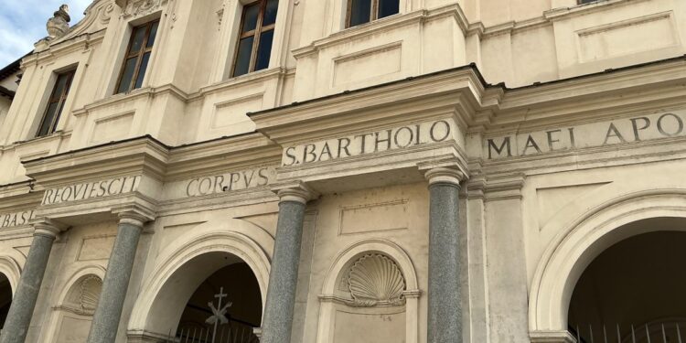 Las reliquias del apóstol San Bartolomé, según el Martirologio Romano, se encuentran en Roma desde el final del siglo X . Las habría conseguido el emperador Otón III de Sajonia de la ciudad de Benevento, y las llevó a la iglesia de San Bartolomé de la Isla Tiberina, iglesia que él mismo mandó construir en el 998 sobre un templo dedicado a Esculapio, que en su día era visitado por muchos peregrinos en busca de curación, para custodiar las reliquias de San Adalberto, obispo de Praga, martirizado en 997.