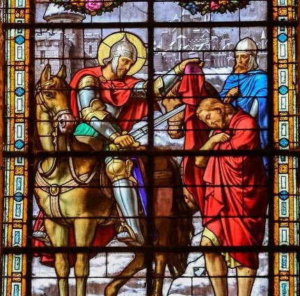 San Martín de Tours, militar, un día partió su capa y dio la mitad a un mendigo; que resultó ser el propio Jesús…