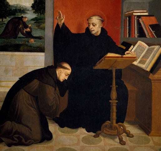 San Benito bendiciendo a San Mauro, Juan Correa de Vivar, Museo del Prado