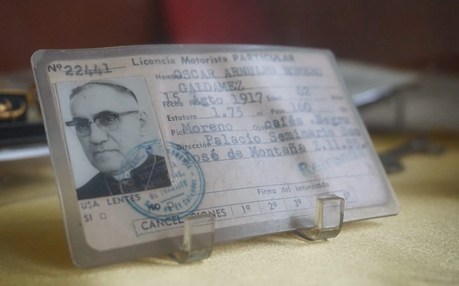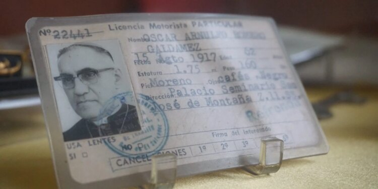 Licencia de conducir de San Óscar Arnulfo Romero, expuesta en la casa donde vivió el santo salvadoreño, hoy parte del Centro Histórico Monseñor Romero, en San Salvador (El Salvador). / Crédito: David Ramos/ACI Prensa.
