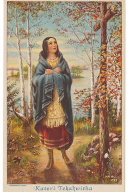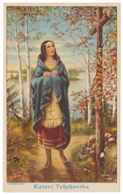“En un gesto de gratitud y admiración, se cubrió el rostro con las manos. Así fue recibida en la Santa Iglesia Católica, con el nombre de Kateri o Catalina. ..”