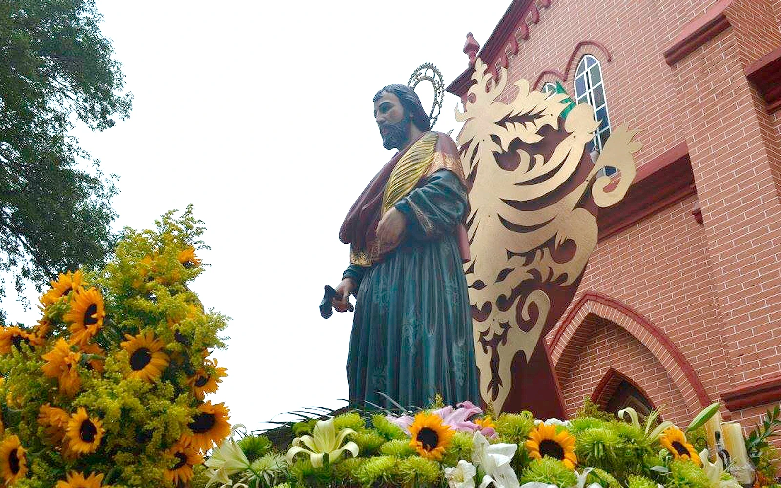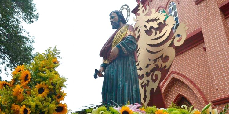 Imagen de San Judas Tadeo a la salida de la basílica de El Santuario. / Crédito: Basílica Santuario San Judas Tadeo de El Santuario.