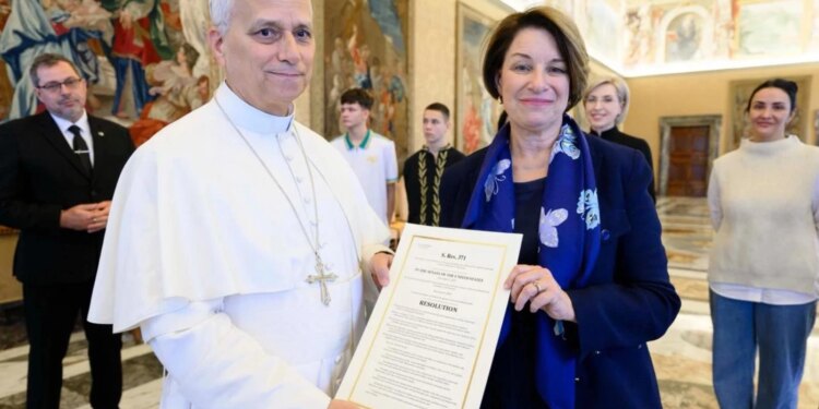 En una declaración de su oficina en el Senado, Klobuchar afirmó: “El Papa León es una verdadera fuerza moral por la paz y la justicia y un defensor de los niños de todo el mundo. Fue un honor reunirme con él como parte de…