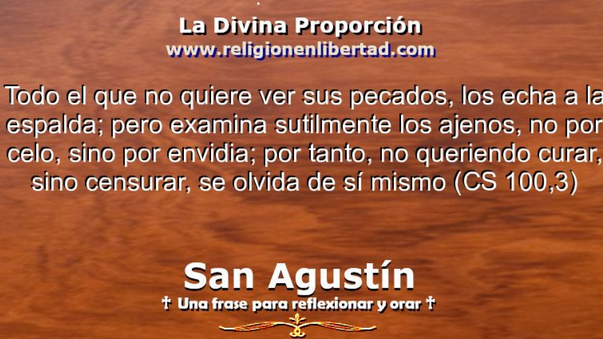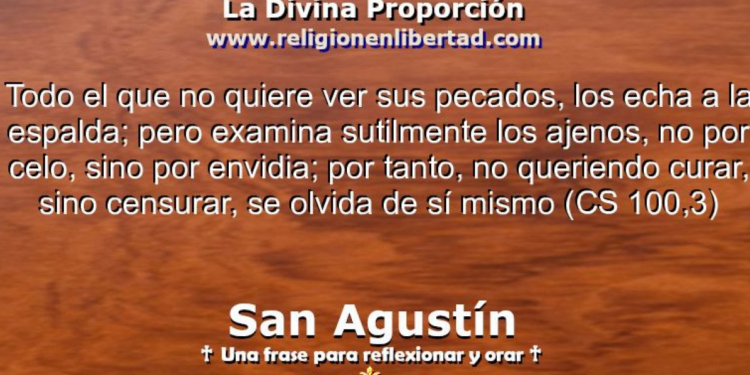 Todo el que no quiere ver sus pecados, los echa a la espalda; pero examina sutilmente los ajenos, no por celo, sino por envidia; por tanto, no queriendo curar, sino censurar, se olvida de sí mismo 🔹San Agustín. Comentario al Salmo 100, 3🔹
