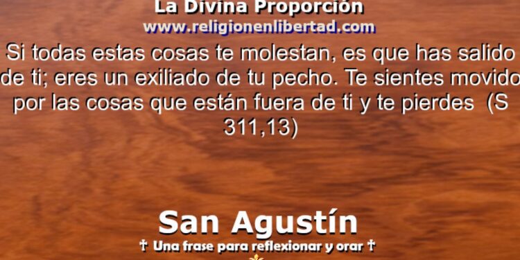 Si todas estas cosas te molestan, es que has salido de ti; eres un exiliado de tu pecho. Te sientes movido por las cosas que están fuera de ti y te pierdes🔹San Agustín. Sermón 311, 13🔹