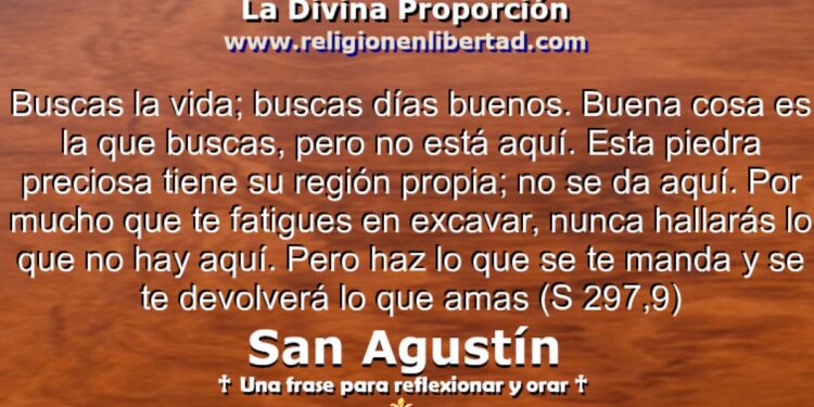Buscas la vida; buscas días buenos. Buena cosa es la que buscas, pero no está aquí. Esta piedra preciosa tiene su región propia; no se da aquí. Por mucho que te fatigues en excavar, nunca hallarás lo que no hay aquí. Pero haz lo que se te manda y se te devolverá lo que amas 🔹San Agustín. Sermón 297,9🔹