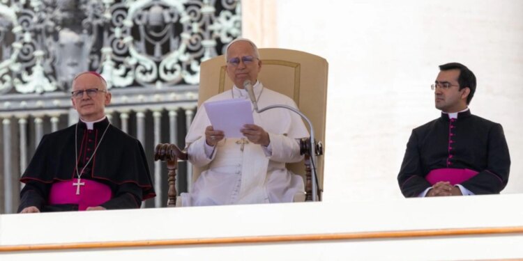 El Papa pronuncia su catequesis en la plaza de San Pedro / Crédito: Daniel Ibañez/ EWTN News