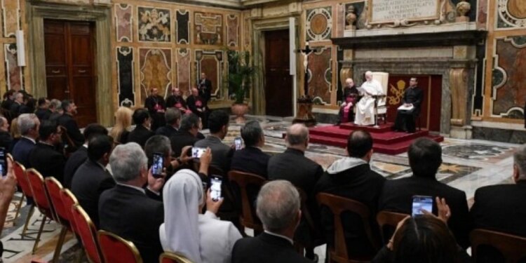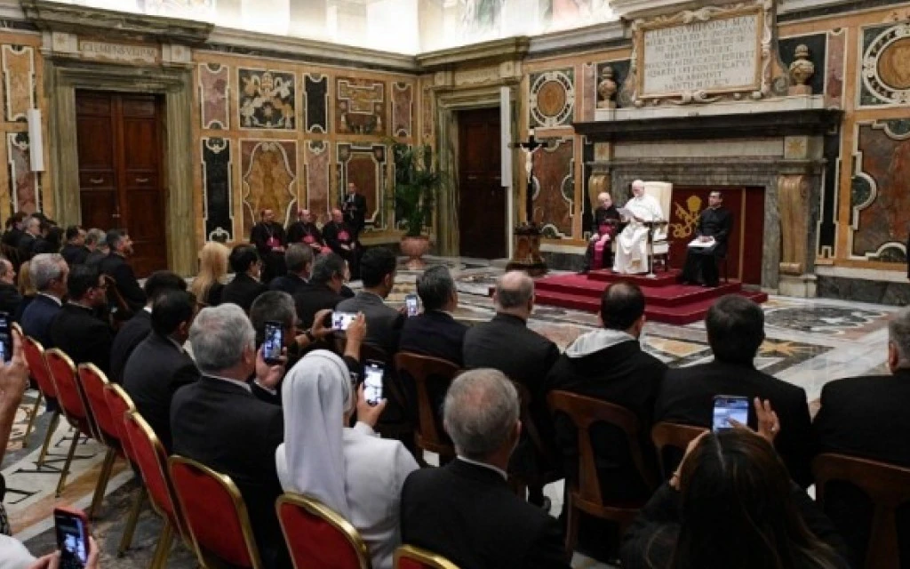 El Papa León XIV se dirige a los miembros de la Organización de Universidades Católicas de América Latina y el Caribe. / Crédito: Vatican Media.