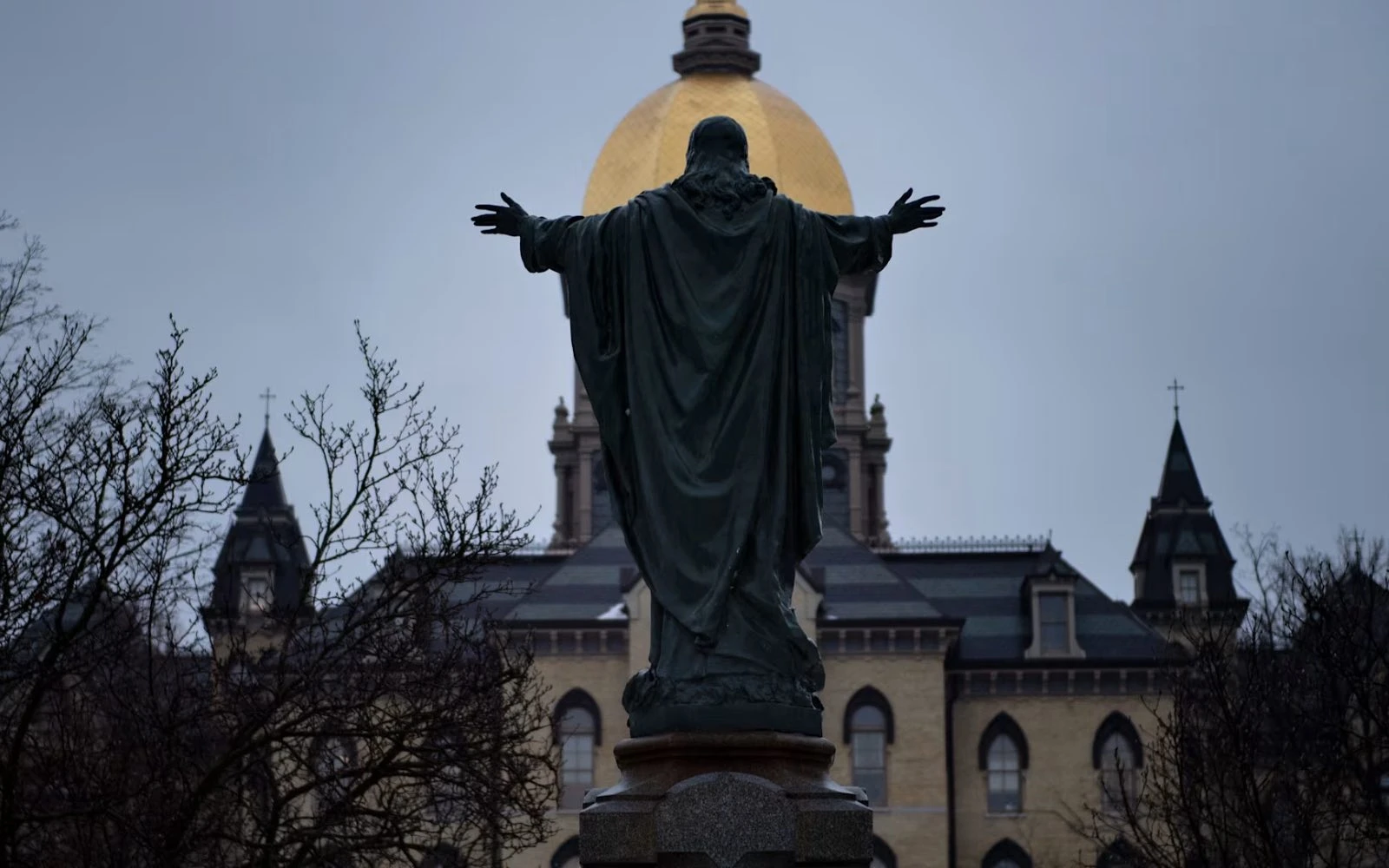 La Cúpula Dorada de Notre Dame se eleva sobre el campus de la universidad, el viernes 24 de enero de 2020. / Crédito: BRENDAN SMIALOWSKI/AFP vía Getty Images.