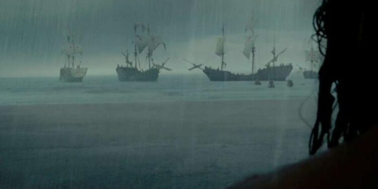 «[Colón] bajo el patrocinio de los Reyes Católicos, Fernando e Isabel, Colón y su tripulación zarparon en tres pequeñas embarcaciones la Niña, la Pinta y la Santa María rumbo a una peligrosa travesía por el Atlántico. Lo guiaba una misión noble: hallar una nueva ruta comercial hacia Asia, dar gloria a España y llevar el Evangelio de Jesucristo a tierras lejanas».