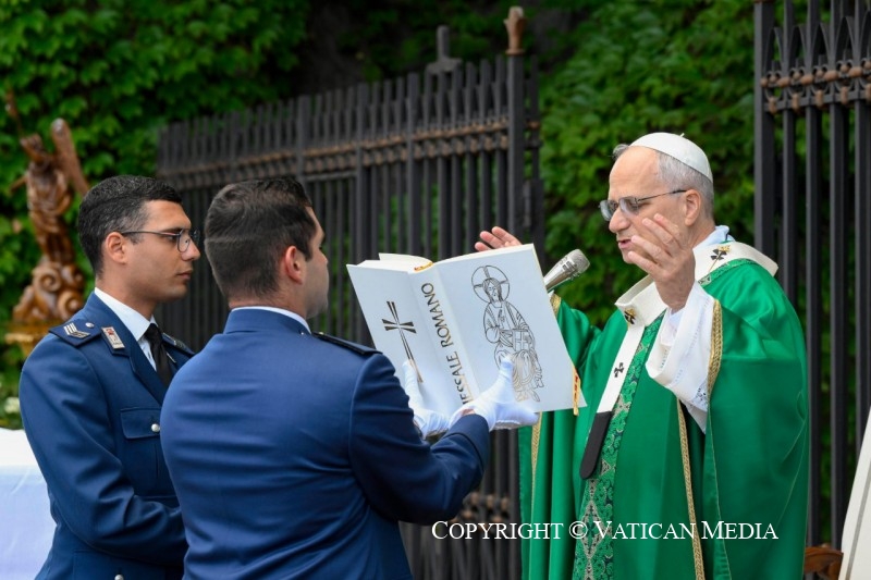 (ZENIT Noticias / Ciudad del Vaticano, 05.10.2025).- Por la tarde del domingo 5 de octubre, en la Gruta de la Virgen de Lourdes en los Jardines Vaticanos, el Papa León XIV celebró una segunda misa el mismo día. Esta segunda celebración eucarística estaba reservada para la Gendarmería Vaticana quien el 29 de septiembre, día de los santos arcángeles, celebró el día de su santo patrón. Es inusual que un Papa celebre la misa dos veces el mismo día. Pero no es infrecuente que muchos párrocos celebren más de dos misas inclusos los domingos. El gesto evidencia lo cargada que está la agenda del Papa León XIV, hecho ya notorio para muchos en Roma. Ofrecemos a continuación la traducción al castellano realizada por ZENIT de la homilía del Papa: