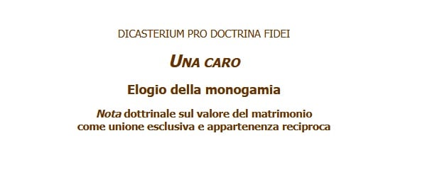 Redacción (25/11/2025 10:32, Gaudium Press) El dicasterio para la Doctrina de la Fe ha emitido la Nota doctrinal Una Caro, elogio de la monogamia, “sobre el valor del matrimonio como unión exclusiva y la pertenencia recíproca”.
