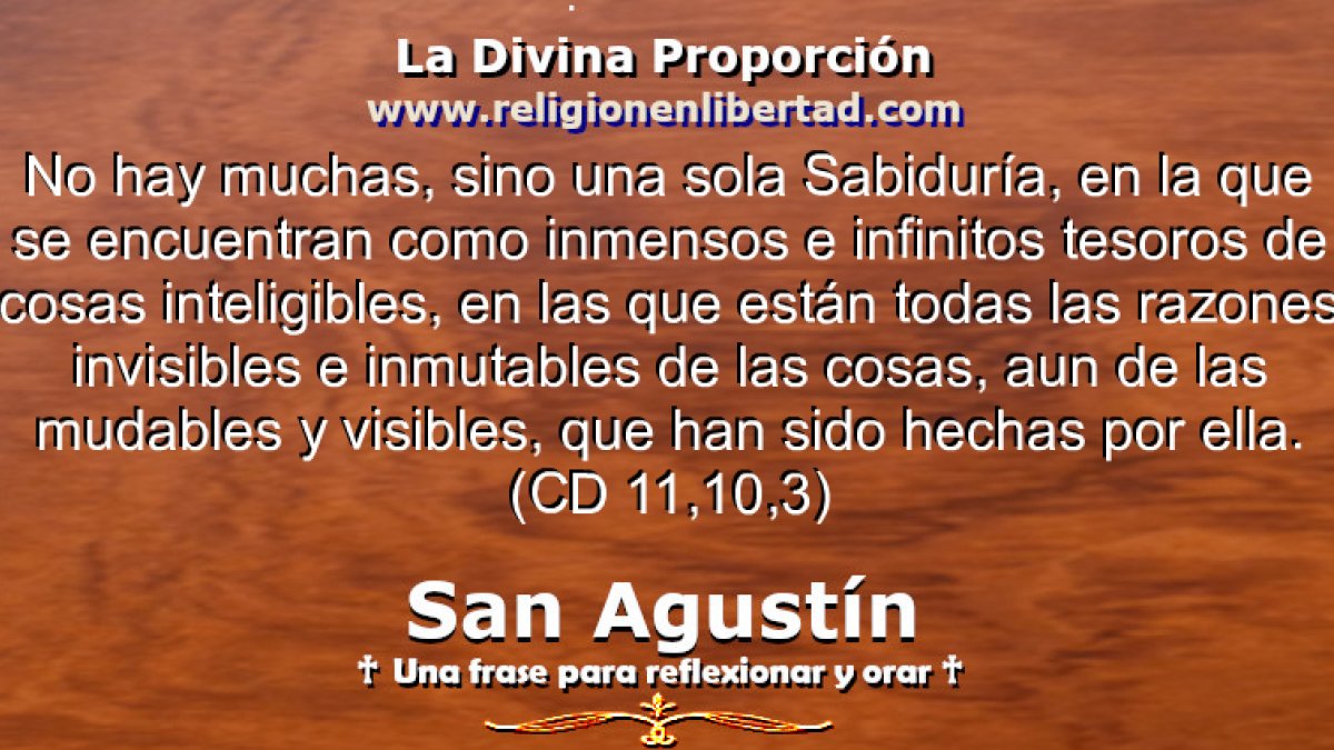 No hay muchas, sino una sola Sabiduría, en la que se encuentran como inmensos e infinitos tesoros de cosas inteligibles, en las que están todas las razones invisibles e inmutables de las cosas, aun de las mudables y visibles, que han sido hechas por ella. 🔹San Agustín. La Ciudad de Dios 11, 10, 3🔹