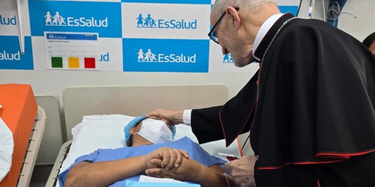 El Cardenal Michael Czerny SJ, prefecto del Dicasterio para el Servicio del Desarrollo Humano Integral, visitando enfermos en hospitales de Chiclayo, 9 de febrero 2026. / Crédito: Dicasterio para el Servicio del Desarrollo Humano Integral