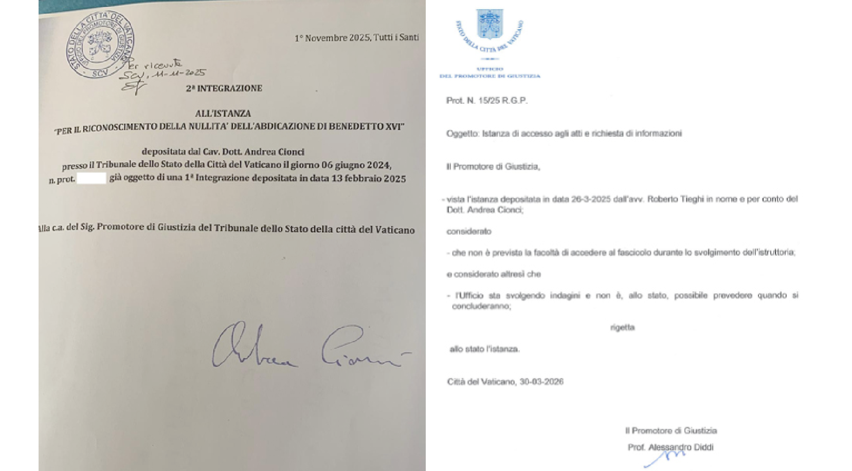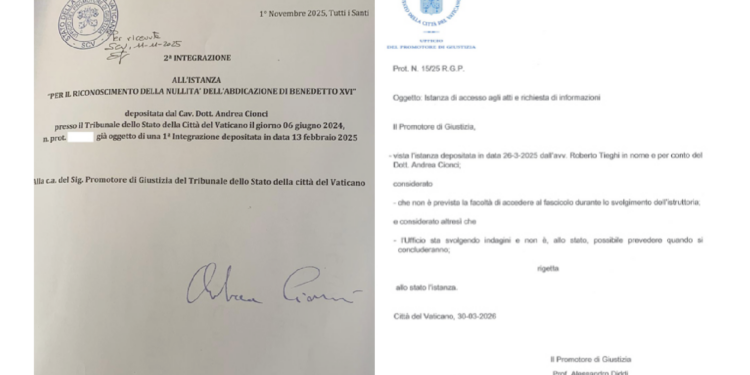 El caso se origina a partir de una petición formal presentada el 6 de junio de 2024 por Andrea Cionci, con el apoyo del abogado Roberto Tieghi y acompañada de numerosas firmas. La solicitud pedía al Tribunal Vaticano que examinara la validez de la decisión de Benedicto XVI de renunciar al ministerio petrino….