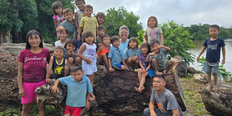 Una misionera en Puerto Ayacucho, estado Amazonas, con niños de una comunidad indígena venezolana. / Crédito: OMP de Venezuela.