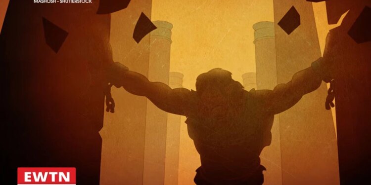 Sansón derriba las columnas. / Crédito: Mashosi – Shutterstock / EWTN Noticias.