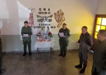 Read moreMiembros de Gendarmería Nacional Argentina rezan en acción de gracias por la liberación de Nahuel Gallo / Crédito: Captura de...