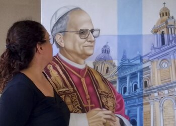 Read moreLa artista Mercedes Fariña junto al retrato que pintó del Papa León XIV / Crédito: Cortesía Mercedes Fariña. , May...
