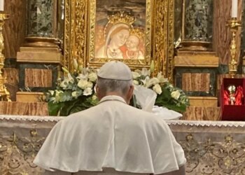 Read moreLeón XIV rezando frente al milagroso icono de la Madre del Buen Consejo en Genazzano. / Crédito: Vatican Media. ,...