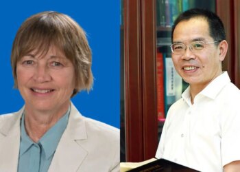 Maria Zuber, científica planetaria estadounidense involucrada en múltiples misiones de la NASA (izquierda), y Meng Anming, biólogo de desarrollo chino...