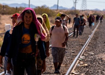 Read moreUn grupo de migrantes caminan junto a las vías férreas para llegar a la frontera México-Estados Unidos. / Crédito: Shutterstock....