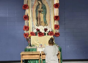 Read moreUna mujer migrante reza frente a una imagen de Nuestra Señora de Guadalupe en un refugio para migrantes en McAllen,...