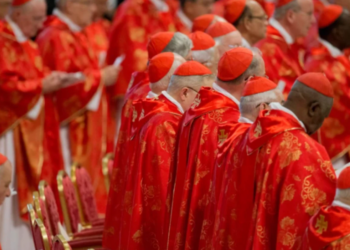 Read moreLos cardenales reunidos durante la séptima Misa de Novendiales en honor del Papa Francisco, el 2 de mayo de 2025...
