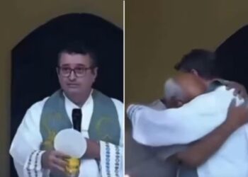 Read moreEl abrazo entre el sacerdote Carlos Henrique y un abuelo en plena misa, el pasado 18 de enero, en la...