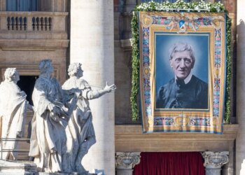 Read moreEl lienzo de San John Henry Newman en la fachada de la Basílica de San Pedro, el 1 de noviembre,...