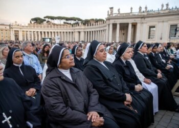 Read moreReligiosas se reúnen para rezar el Rosario por el papa Francisco en la Plaza de San Pedro del Vaticano, el...