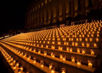Read moreVelas se alinean en las escaleras del Parlamento de Finlandia en Helsinki al anochecer el 21 de marzo de 2026,...