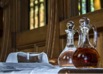 Read moreVino y agua, contenidos en vinajeras para el ofertorio, que serán presentados y consagrados durante la Misa. / Crédito: iweta0077/Shutterstock....