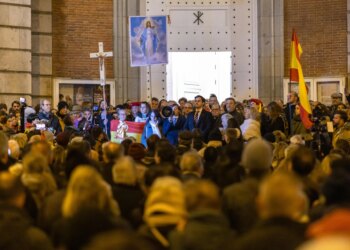 Read moreLaicos congregados ante el Santuario de la Inmaculada Concepción en Madrid para rezar el Rosario por España. / Crédito: ACI...